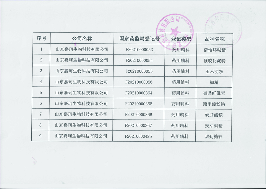 山东嘉珂生物科技有限公司坐落于著名的“孟子故里、邹鲁圣地”,国家历史文化名城、全国综合实力百强县市—山东省邹城市。公司占地面积100亩,总投资5.01亿元,是一家现代化医药辅料制造企业。 公司主要从事药用中间体及食品添加剂的技术开发和生产制造,公司以国家“一带一路”战略为指导,加快升级步伐。严格按照GMP标准设...